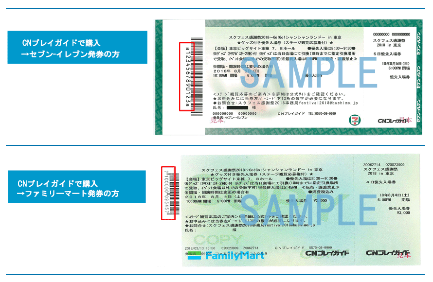 ●セブン-イレブンまたはファミリーマートでチケットをお引取される場合、通知後にご案内メールが 《2通》 届きます。 チケットのお引取りには、2通目のメール記載の13桁の専用番号が必要となります。 (1通目のメール記載の予約番号だけでは店頭でチケットをお引取りできませんのでご注意ください。)