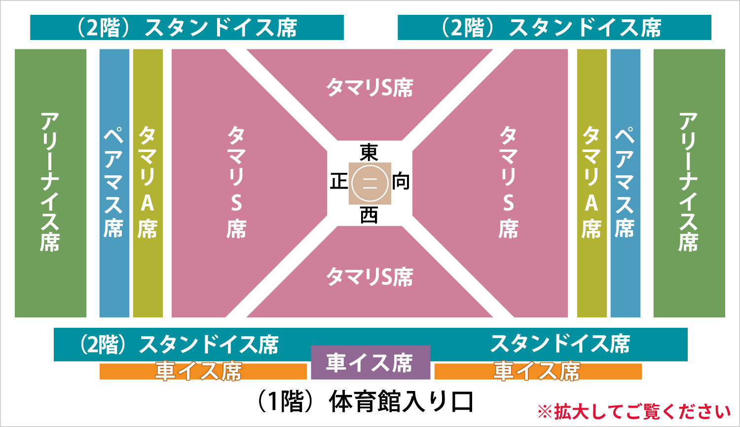 - 相撲土産セットおよび弁当セットのみでは入場できません。観覧席も併せてご購入ください。なお観覧席と相撲土産セットおよび弁当セットは同時にご購入できません。それぞれ個別にお申込みが必要です。