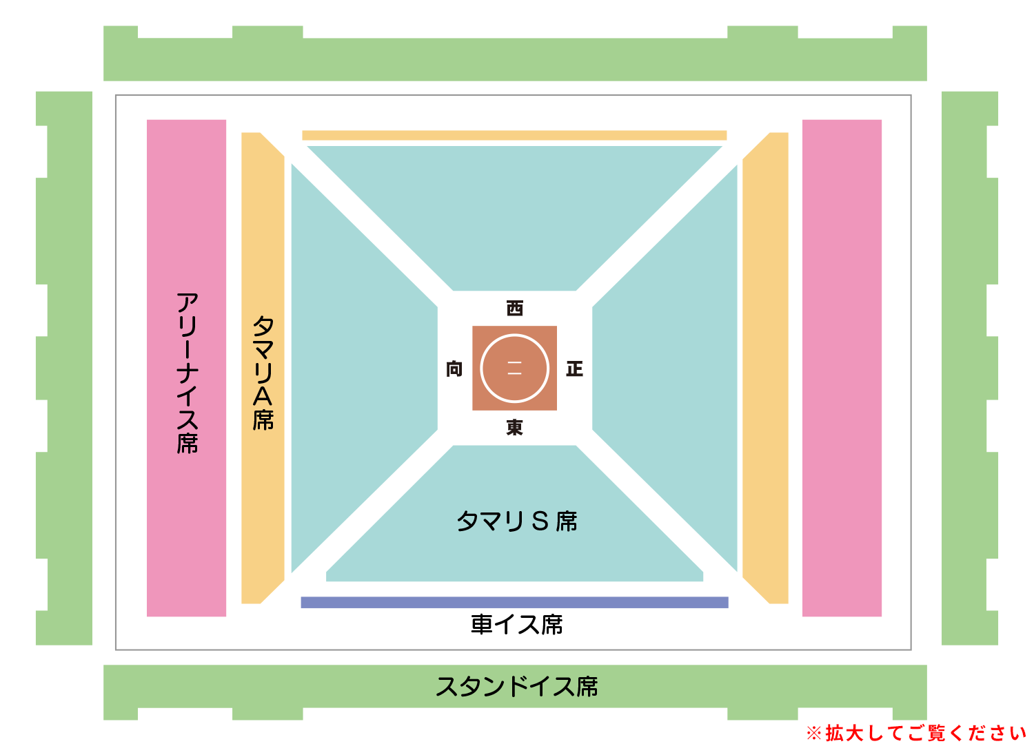 - 2階席のお客様はアリーナへ立ち入りができませんのでご了承ください。