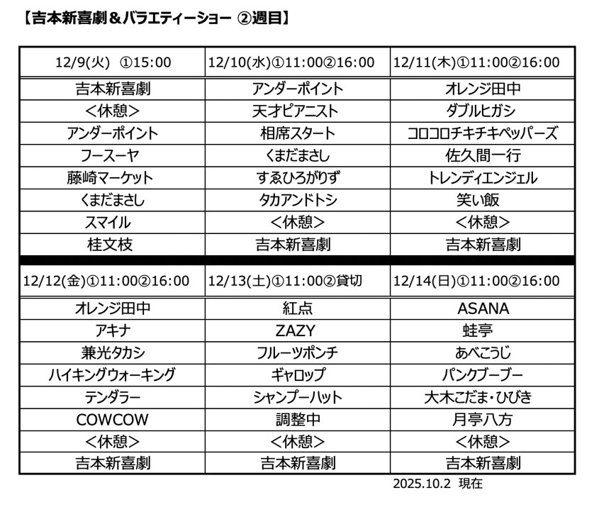 吉本新喜劇&バラエティーショー(日替わり出演)