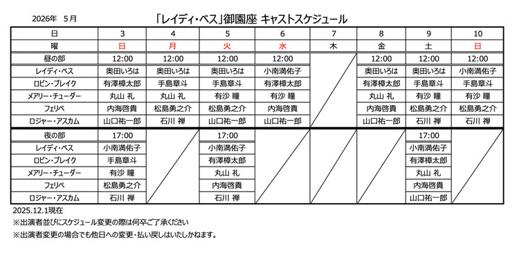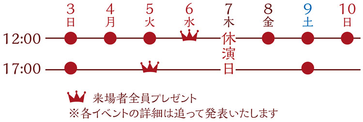 ※1申込4枚まで ※座席をご選択いただけます。 ※お支払いはクレジットカード決済のみとなります。 ※未就学児の入場不可。 【車いすスペースについて】 ※車いすでご観劇されるお客様のための車いすスペースは事前購入(有料)が必要です。 ※車いすスペース以外のチケットでご入場されても車いすスペースへの移動は出来ません、ご了承ください。 ※お取り扱いは、御園座チケットセンターに限ります。 ※ご購入の方は、3月1日以降に御園座チケットセンターでご予約ください。 ☎052-308-8899オペレーター対応(10:00〜17:00) ※電話でご予約ください、それ以外では販売していません。 ■共通注意事項■ ※未就学児はご入場いただけません。 ※転売目的での予約及び購入は固くお断りいたします。 ※インターネットオークション等で購入されたチケットでのご入場は、お断りさせていただく場合がございます。また、それに伴い発生したトラブルに関しての責任も負いかねますのでご注意ください。 ※ご観劇は、チケットをご予約・ご購入されたご本人様に限定させていただきます。 2枚以上ご購入の場合、同一回にご本人様とお連れ様で観劇の場合は、ご購入いただけます。 ※本公演は、当日ご入場の際に、購入者ご本人様確認をする場合がございます。 公演当日は購入者本人様の写真付き身分証明書(運転免許証、パスポート、マイナンバーカード、学生証、身体障がい者手帳等)をお持ちくださいますようお願いいたします。 ※ご本人様確認の結果、チケットを購入されたご本人様であることが確認できない場合は、ご入場をお断りさせていただく場合がございます。 ※昨今、インターネット上で意図的な転売行為が急増しております。転売目的での予約は固くお断りいたします。なお、予約番号がインターネット上に出品された場合は、予約番号を削除いたします。 また、トラブルに関しての責任も負いかねますのでご注意ください。 チケット購入に関するお問い合わせ:CNプレイガイド 03-5800-3799(10:00〜18:00) 公演に関するお問い合わせ:株式会社御園座 営業部 052-222-8222(10:00〜18:00) |